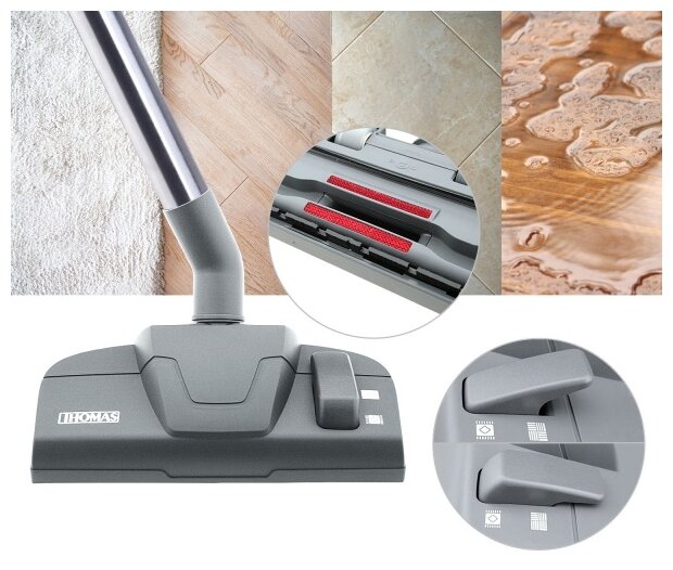 Думал брать робота, но чистый воздух и здоровье детей перевесило. Давно мечтал о моющем пылесосе, когда в детстве еще рекламировали эти томасы. Итак, не такой уж и громоздкий, ну в половину больше нормального циклонного пылесоса. Уход не сложнее, а то и проще цем за циклонным безмешковым. Вылил- обмыл, поставил сушиться. К сухой уборке вопросов нет, всё делает хорошо - фильтрует отлично, а вот с влажной...нужно или учиться или привыкать, но пока это больше на игрушку похоже. Щётка для ламината ничего не отмоет, даже простенького. Просто освежает пол и всё. Может в этом и есть её предназначение. Чтобы "помыть" пол, нужно брать тряпку и мыть). Жидкость для дивана не отмыла акварельные краски. И замачивали и раз 10 медленно проходили...нет- видно. Может нужна химия получше. Ну и не крепится ёмкость для воды. В вертикальном положении иногда отходит. Можно её убрать, но тогда вид портится. Не придумали продуманные немцы для неё фиксатора.