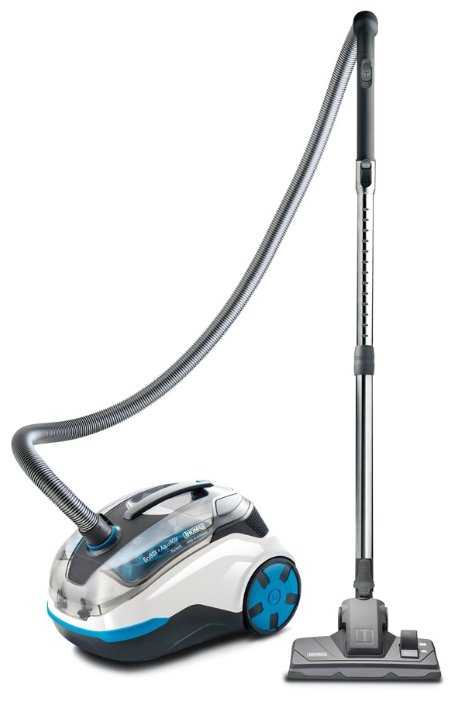 Почитал отзывы: многие, прям, без ума от таких пылесосов. По мне- так никакого вау-эффекта. Обычный хороший пылесос с аквафильтром, достаточно простой, качественно пылесосит. Может работать с аквафильтром (контейнер для воды)и без него, как обычный пылесос (контейнер для пыли), имеет фильтр НЕРА13. Шланг длинный, хотя и не матализированный, но не перегибается, шнур длинный. В аквафильтр заливаю, где- то, около литра воды. В процессе уборки приходится чуть-чуть доливать, как написано в инструкции, так как она, по ходу , испаряется. Может, кстати, собирать с пола воду, есть специальная насадка в контейнер, чтобы собранная вода не расплескивалась, но не знаю, не пробовали. Контейнеры мыть достаточно просто. Легко ездит и маневрирует. Приятно удивила насадка для паркета, со щеткой и войлоком, ламинат тоже качественно убирает. Но есть, правда, и недостатки. Раньше были пылесосы LG, Samsung, Bosch, у всех шланг-труба-насадки можно было собирать с закрытыми глазами, как автомат Калашникова. Здесь же надо делать это аккуратно и интимно-нежно, постоянно контролируя себя, правильно ли ты вставил-сунул-повернул. Так же- электрический шнур, который начинает автоматически сворачивается, как только зацепляется за мебель. Но в целом - это все мелкие нюансы, которые не влияют на работу пылесоса, а работу он выполняет на отлично.
