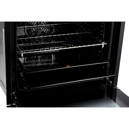 - Вентилятор конвекции равномерно распределяет тепло, позволяя готовить на двух уровнях одновременно без подгорания или недопекания, что улучшает качество выпечки и мяса.
