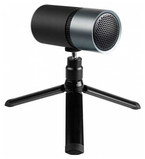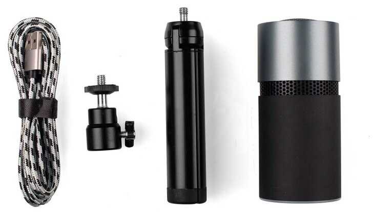 Интересный дизайн. Удобное крепление на резьбе, можно крепить на любой фотоштатив. Отличная металлическая тренога в комплекте (подойдет для фото). Хороший кабель USB-C. Хороший звук. Нормально настраивается в Linux.