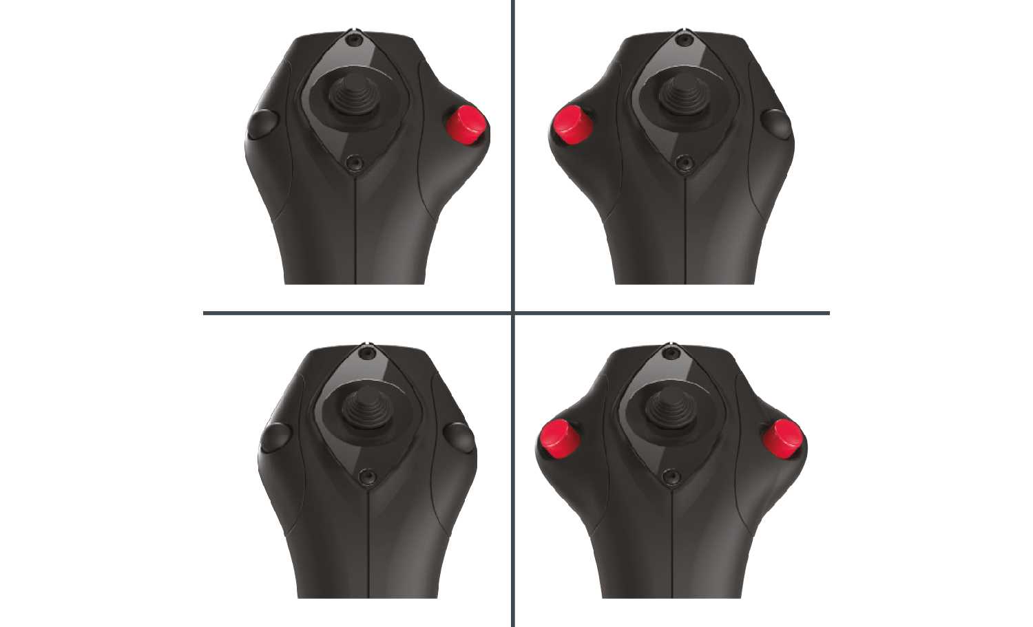 Сменные боковые кнопки (2 комплекта в коробке) и переключатель handedness на днище позволяют адаптировать джойстик под левую/правую руку за 3 минуты. Физическое смещение оси отсутствует — меняется только расположение кнопок под большой палец. Для тренировок в экипаже потребуется второй идентичный джойстик. -