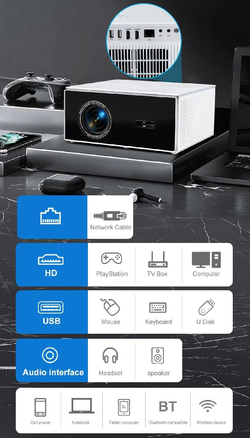 - - шумный как и все проекторы, андроид тупенький, лучше использовать отдельный носитель или приставку