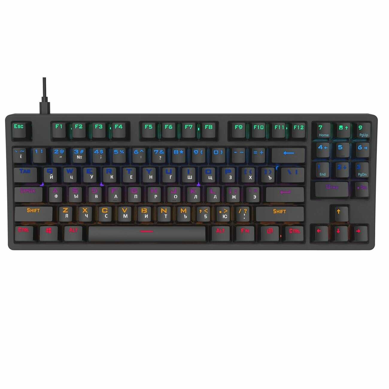 - + Соотношение цена/качество, красные тихие свичи, компактная, в то же время есть доп. клавиши с цифрами