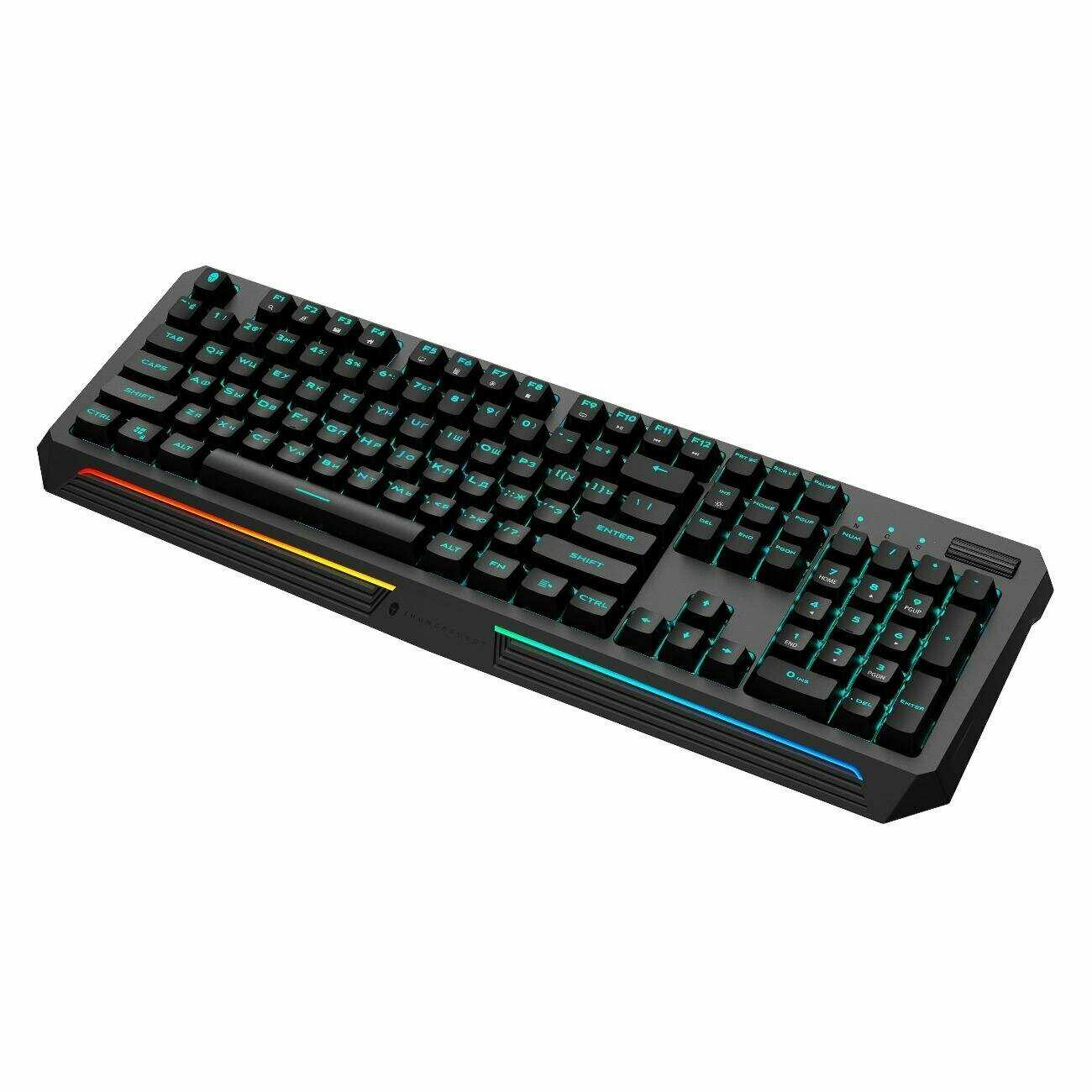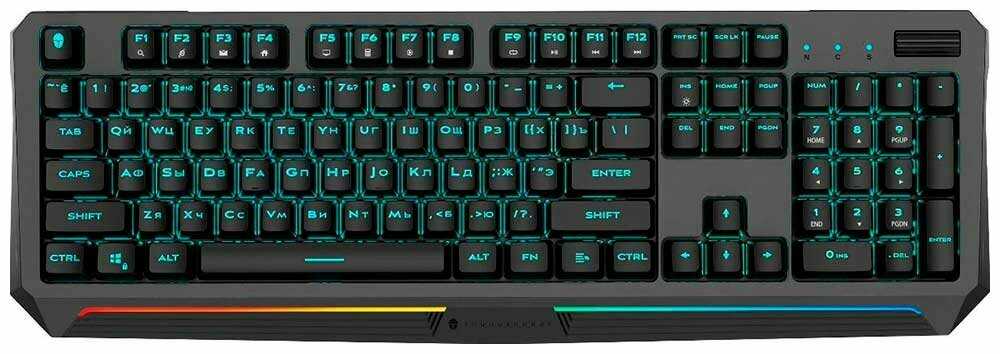 Клавиатура Thunderobot KG8104R это стильный и агрессивный дизайн, механические переключатели красного цвета (линейные), проводное USB-подключение, стандартная раскладка на 104 клавиши с Num-блоком и дополнительным колесом регулировки громкости или яркости подсветки. Одноцветная подсветка клавиш приятного насыщенного бирюзового цвета, а также две области подсветки во фронтальной части с возможностью выбора всех цветов RGB-палитры. Клавиатура оснащена колёсиком регулировки громкости и дополнительными функциями, такими как регулировка высоты и угла наклона, что обеспечивает комфортное использование в течение длительного времени.