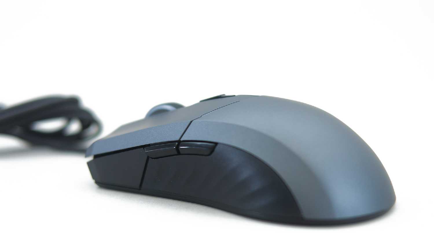 - + Интересный дизайн, универсальный хват, невысокая цена, хороший сенсор PixArt3360, резиновые вставки по бокам для удобного захвата мыши, за несколько недель использования неудобств не доставили