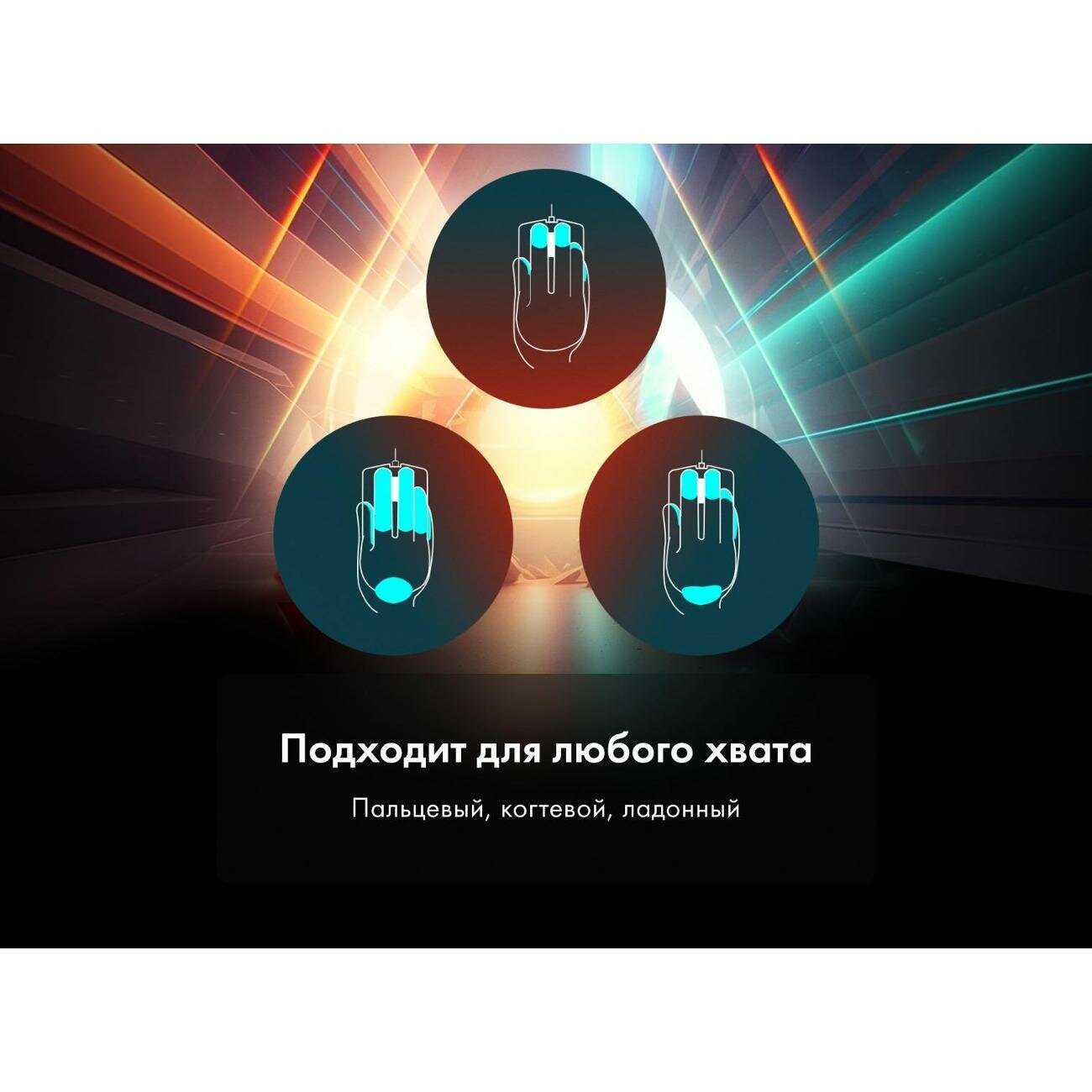 - Поддерживает несколько уровней DPI (до 6400), которые визуально индицируются цветом подсветки колесика для удобства переключения в бою.