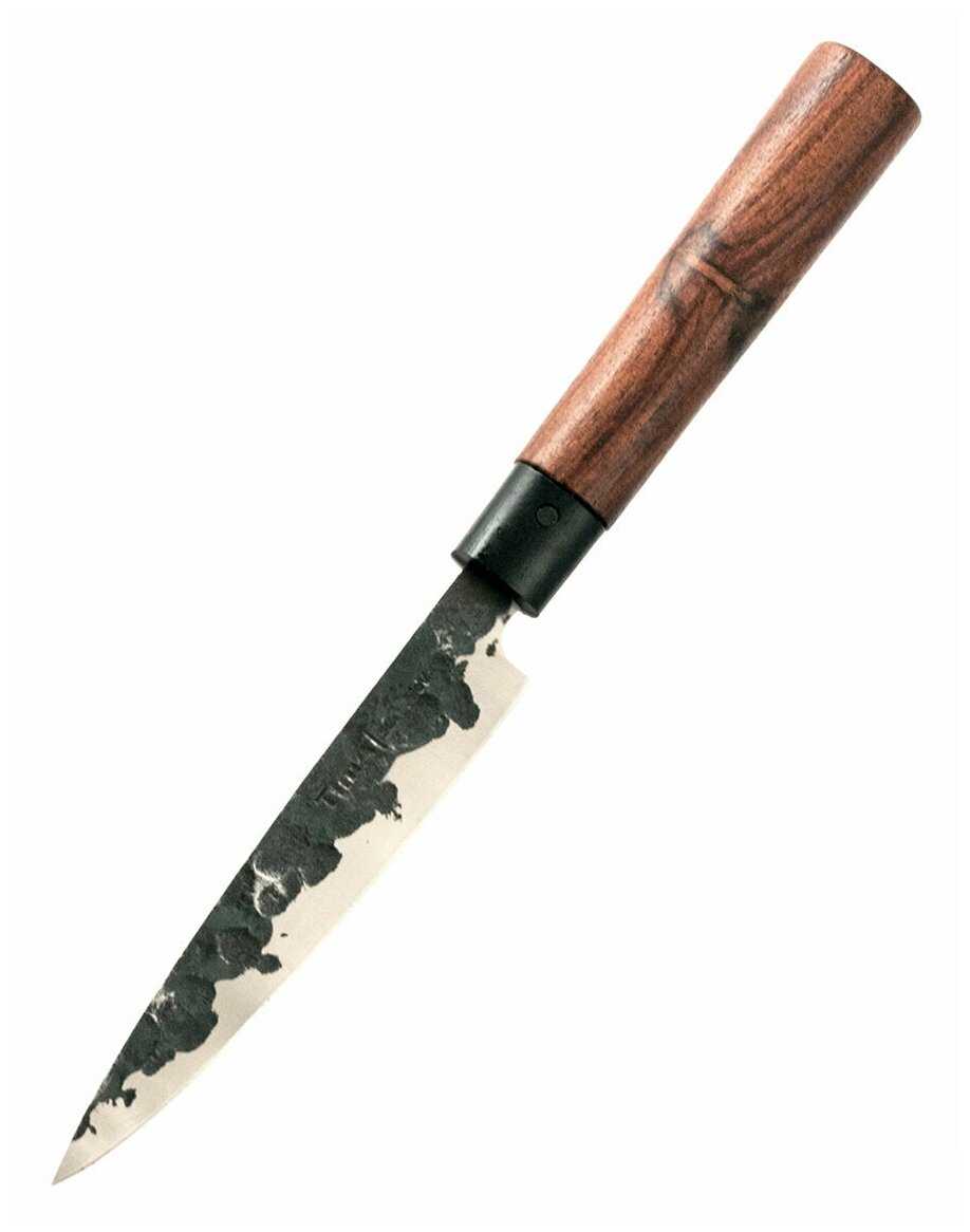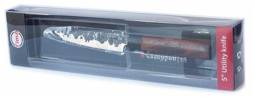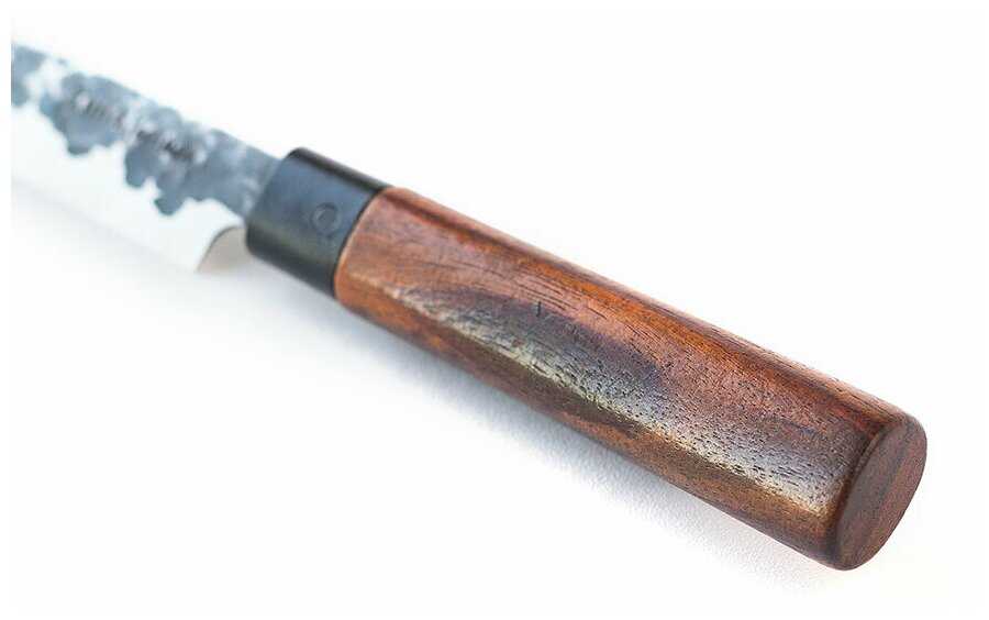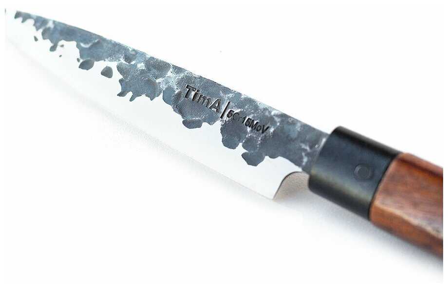 Недорогой, неплохая для кухонника сталь 5Cr15MoV. Удобная и привычная для нас, российских, форма и эргономика.