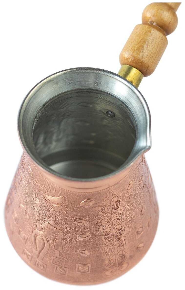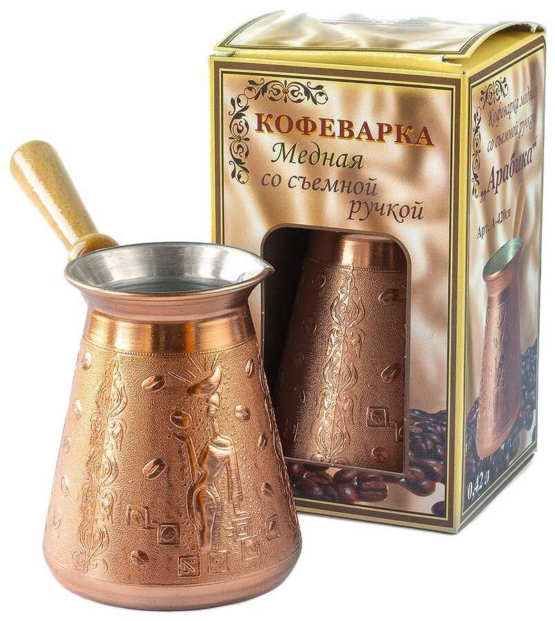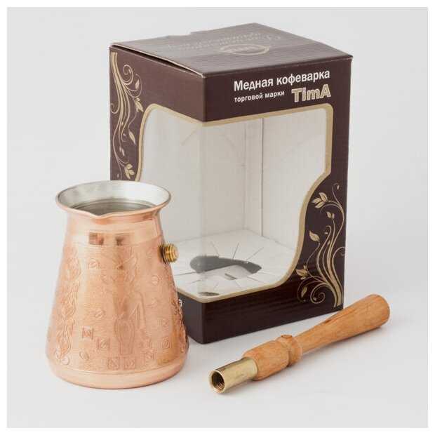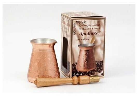 Турка легкая, достаточно эстетичная, моется легко. Но, после второго раза начала болтаться деревянная ручка и не держится совсем, есть опасность что может упасть при подьеме с горячим кофе.