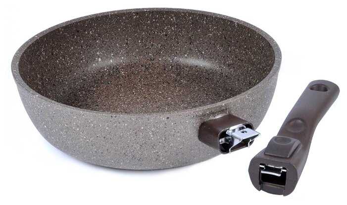 - + съёмная ручка, хорошая антипригарка, а что самое главное - дно скрыто под антипригаркой и можно мыть в посудомойке, не боясь, что со временем оно испортится, как это бывает с другими сковородками