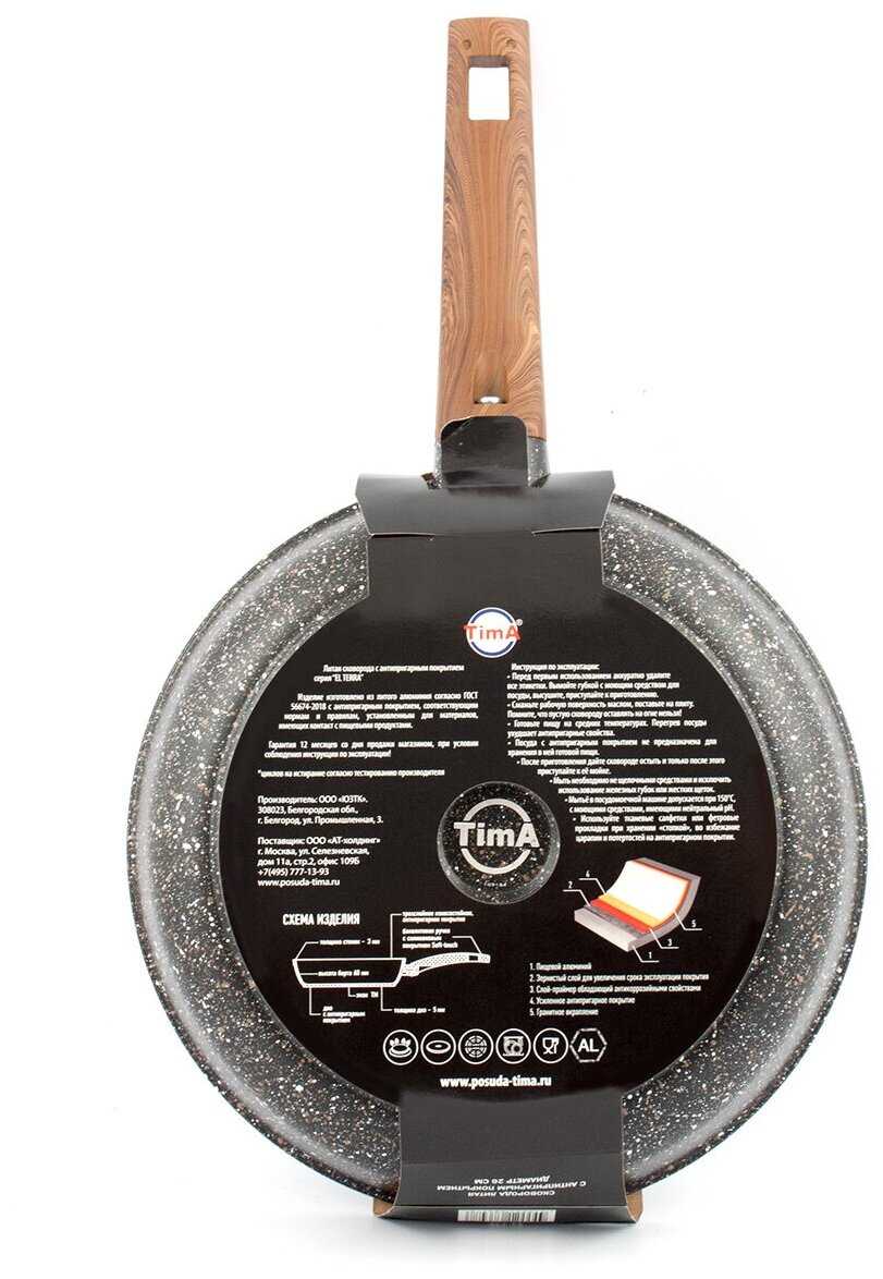 | Дополнительная информация : | двухслойное антипригарное покрытие Greblon Non Stick C2+, материал ручки: бакелит |