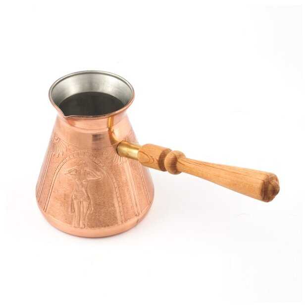 У деревянной ручки короткий наконечник, ручка отвалилась после нескольких использований турки. Придется приклеивать, но непонятно как поведет себя клей при нагревании. Сама турка красивая, но медь тонкая, турка легкая. Учитывая что турка стоит не дешево, за такой же ценник можно купить в магазине посмотрев и покрутив в руках и выбрать лучший вариант