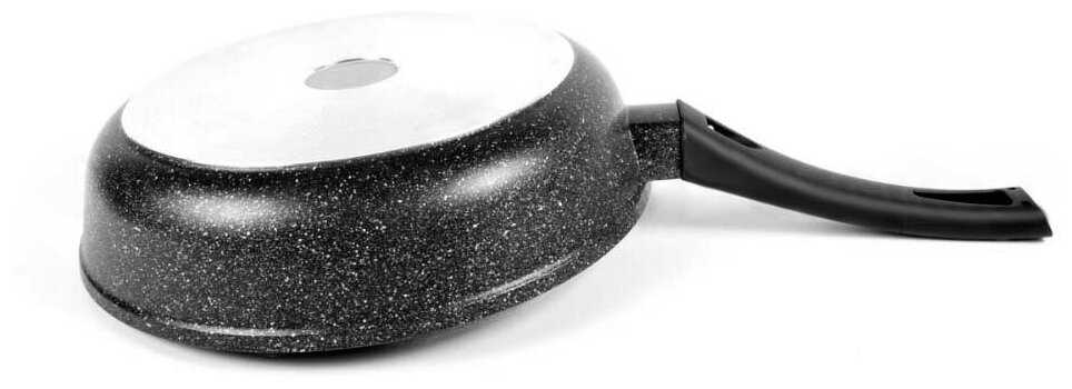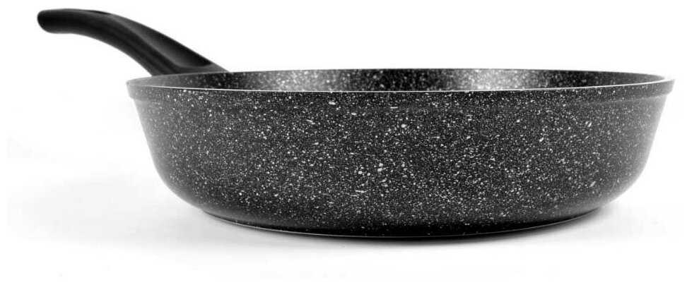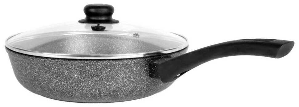 - + Отличная сковорода. Хорошее покрытие. Ничего не пригарает, моется без проблем. Стоит отметить её вес - он очень приличный. Это не тонкая сковорода из "фольги", а такая хорошая и увесистая. Высокие бортики позволяют использовать сковороду как универсальный инструмент для приготовления. Идёт в комплекте с крышкой, что сейчас очень редко бывает.