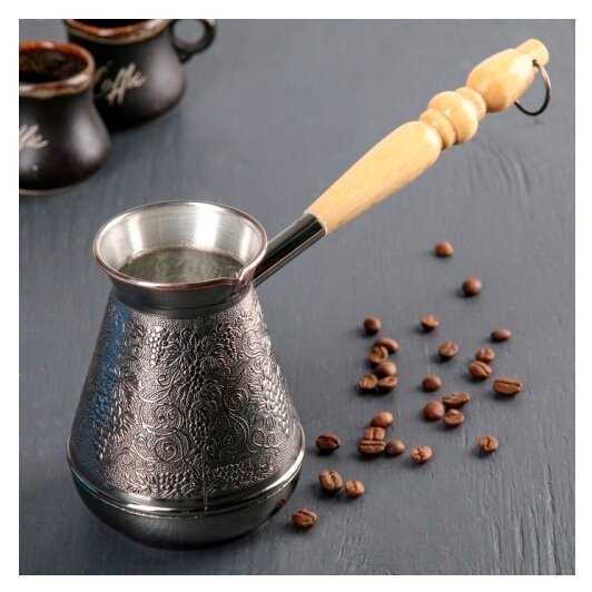 - Лёгкий вес (350 г) сочетается с прочностью, делая турку удобной для ежедневного использования.