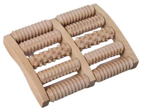 | Дополнительная информация : | техника массажа: сядьте на стул, босые ноги поставьте на деревянный массажер, находящийся на полу, прокатывайте по роликам босые ступни от кончиков пальцев до пятки и обратно, прорабатывая рефлекторные зоны, продолжительность — 5 минут, внешние и внутренние ребра стопы массируйте аналогично |