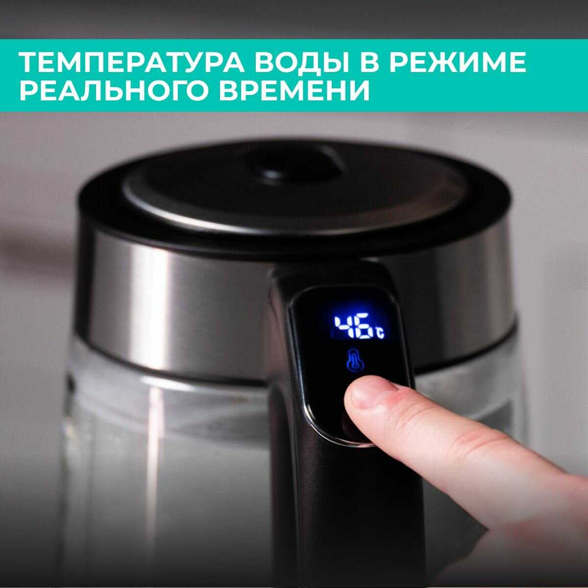 - Сенсорная кнопка включения расположена слишком близко к зоне хвата рукой, что приводит к случайным активациям при переносе чайника с подставки.
