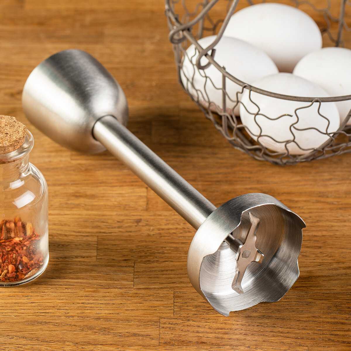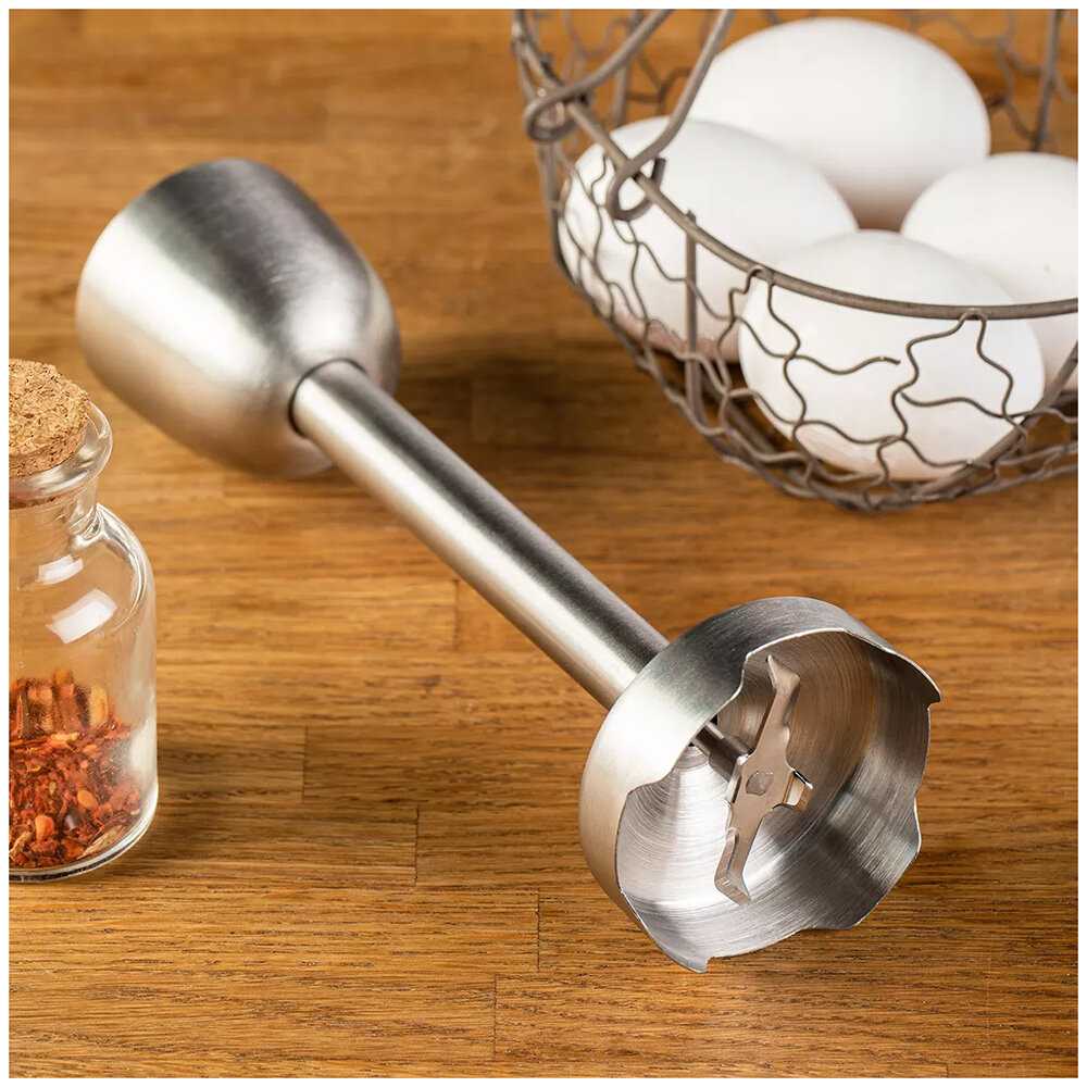 - + Стильный, мощный, удобный в пользование. Купила в подарок, но решила оставить себе. Мерный стакан на удобной и надежной подставке. Есть насадка венчик для взбивания омлета и других блюд. Он несколько тяжелее чем прежний, но не критично. Удобно лежит в руке. Особенно нравится делать суп-пюре. Покупкой очень довольна, рекомендую. И ещё плюс - насадки очень удобно одеваются. В прежнем было хуже, а здесь с помощью кнопочки снимаются и одеваются. Держатся надежно. Нужно время, чтобы привыкнуть. Рекомендую!