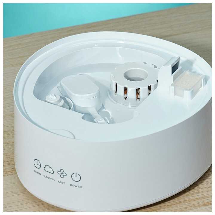 - + Из плюсов интеграция с Алисой, бак на четыре литра, возможность использовать ароматические масла, автоматическое отключение при отсутствии воды, настраиваемые таймеры и расписание работы.