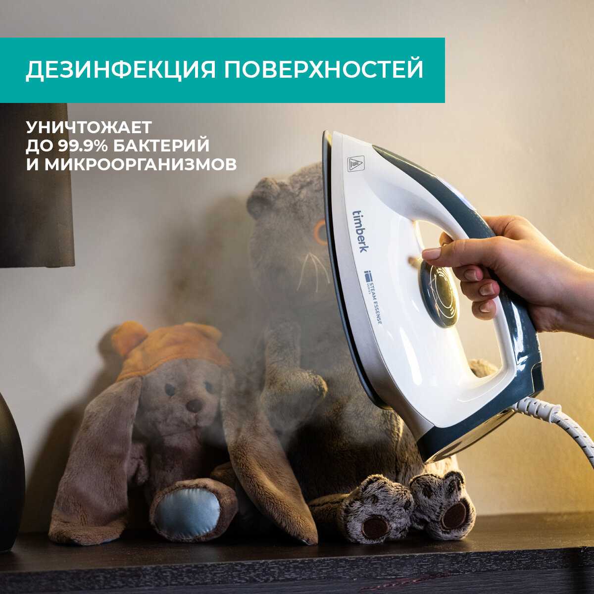 - Отсутствие защиты от перегрева — при длительной работе корпус утюга нагревается до 60–70°C.