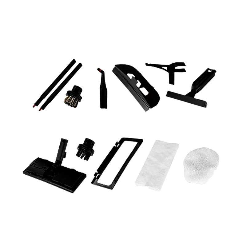 В комплекте представлено множество насадок на все случаи жизни: для пола, окон, мебели, одежды, а также щелевые насадки для очистки труднодоступных мест. Их разнообразие позволяет выполнять широкий спектр работ по дому, от мытья окон до чистки обивки дивана и отпаривания штор. Качество крепления насадок пользователи оценивают как надежное. -