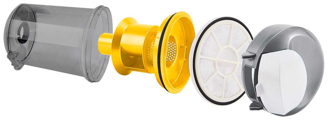 Критично следить за состоянием трёх элементов: бумажный фильтр (чистка после каждого использования), пластиковые защёлки контейнера (риск поломки при разборке) и колёсная база (надёжность крепления осей). Насадки требуют аккуратного хранения — крепления шланга тугие, при усилии могут треснуть. Электропровод склонен к перелому у основания блока.