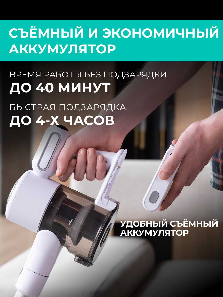 - + время работы , конечно маленькое, но его хватает пропылесосить пол (не ковровое покрытие) во всём доме. удачный вариант подсветки на насадке - видно даже мелкую пыль. Компактный, удобный, не шумный (домашние животные звук переносят спокойно)