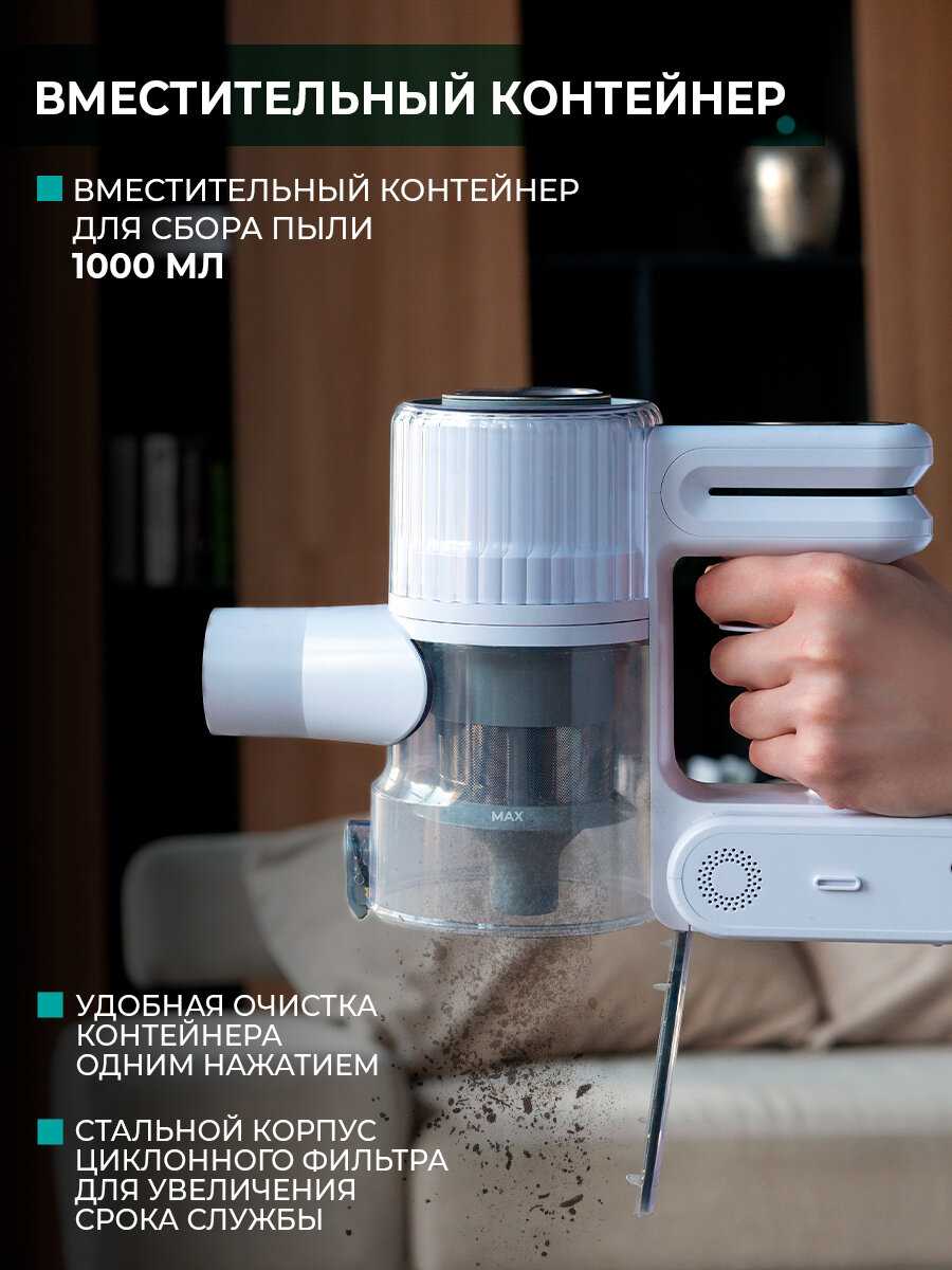 Пылесос в целом понравился за свою цену ,мощность хорошая,маневренный,АКБ полного заряда хватает на уборку квартиры 42 квадрата 4 раза (это на минимальной мощности),на максимальной не проверяла-не было необходимости,и на минимальной всё хорошо убирает(пыль и шерсть кота )подсветка прикольная вещь -пыль и правда видна как под микроскопом ,раньше казалось что не столько пыли дома