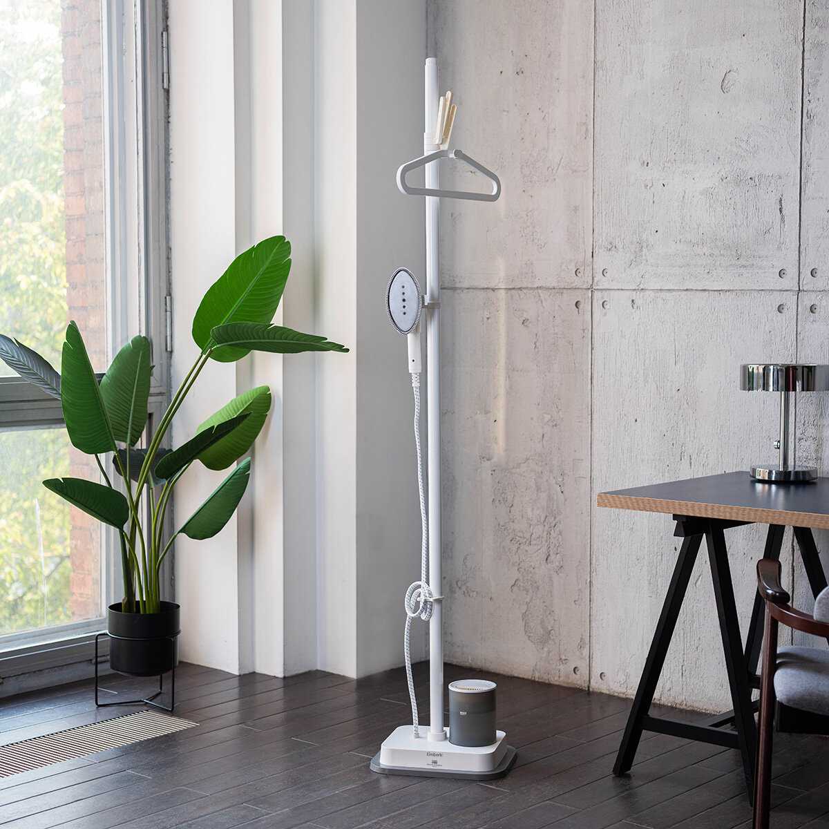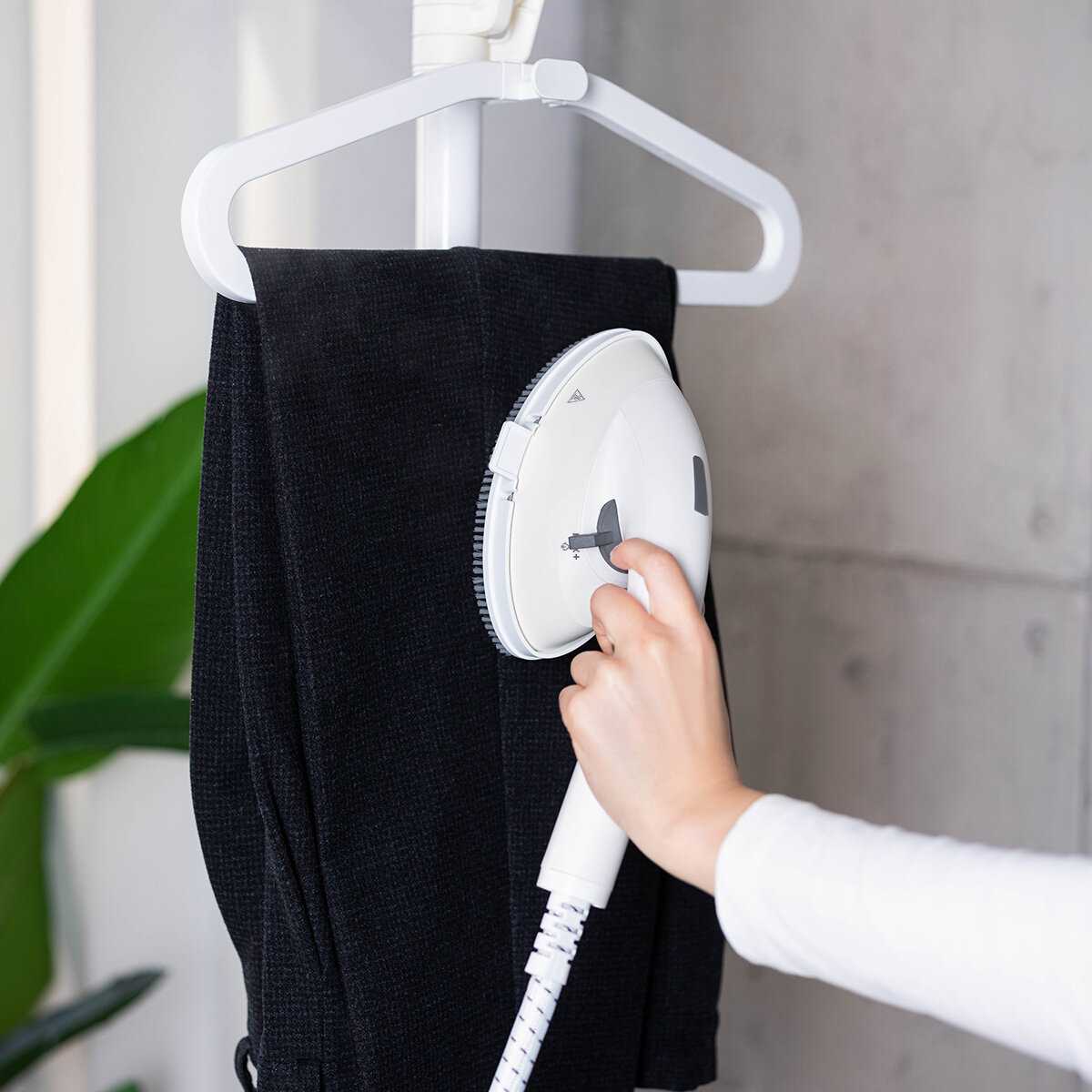 - + Хороший. Достаточно мощный поток пара. В принципе практически всё можно отпарить вертикально