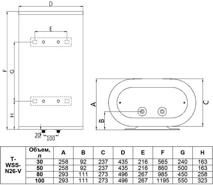 - Вертикальная компоновка с верхним забором воды снижает КПД до 90% (27 л из 30 л фактически не используются).