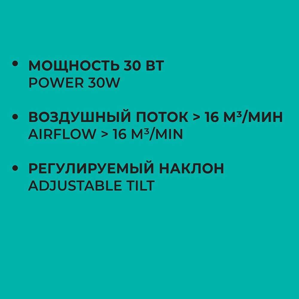 - Широкие лопасти с надежной фиксацией обеспечивают равномерный поток без деформаций во время эксплуатации.