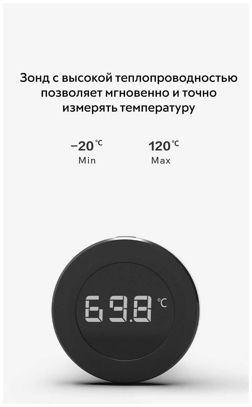 - - С основной функцией справляется плохо. Температуру кипятка показывает 96 градусов. Со временем показания пляшут как в меньшую, так и в большую сторону. Могу сделать вывод, что показания не точные.