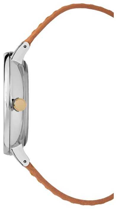 на лицо меры примерно 1 1/2 дюйма в диаметре и корпус часов и коричневой кожей запястье пряжки все серебряный тон металла с нержавеющей стали. Маркировка на задней крышке часов указывают, что это водонепроницаемость до 30 метров, которая определяется как терпеть краткая погружение и брызги. Часы использует sr920sw батареи клетки.<БР />