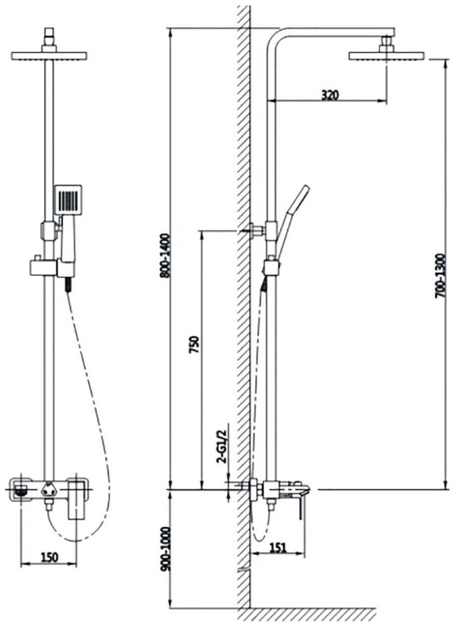 | Высота стойки для душа : | 750 мм |