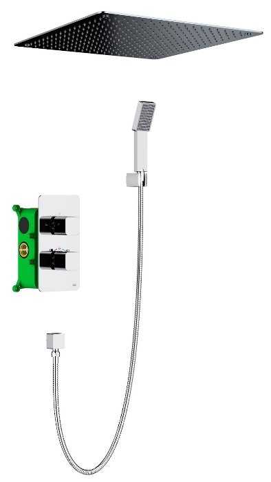 | Дополнительная информация : | душевая система скрытого монтажа изготовлена из высококачественной латуни класса А с гладким покрытием которое не теряет цвет со временем устойчиво к царапинам и превосходно защищает от коррозии, размер верхнего душа: 50x50 см, картридж керамический диаметром 35 мм с термостатом |