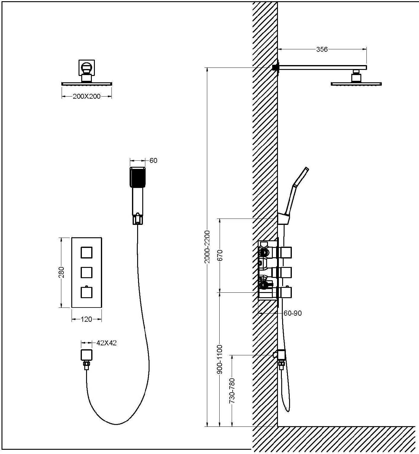 Высота стойки для душа : | 2000 мм |
