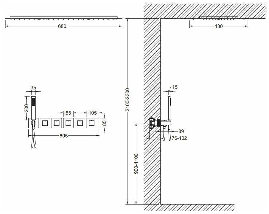 | Комплектация : | верхний душ, держатель лейки, лейка, переключатель потоков, ручной душ, смеситель, шланг |