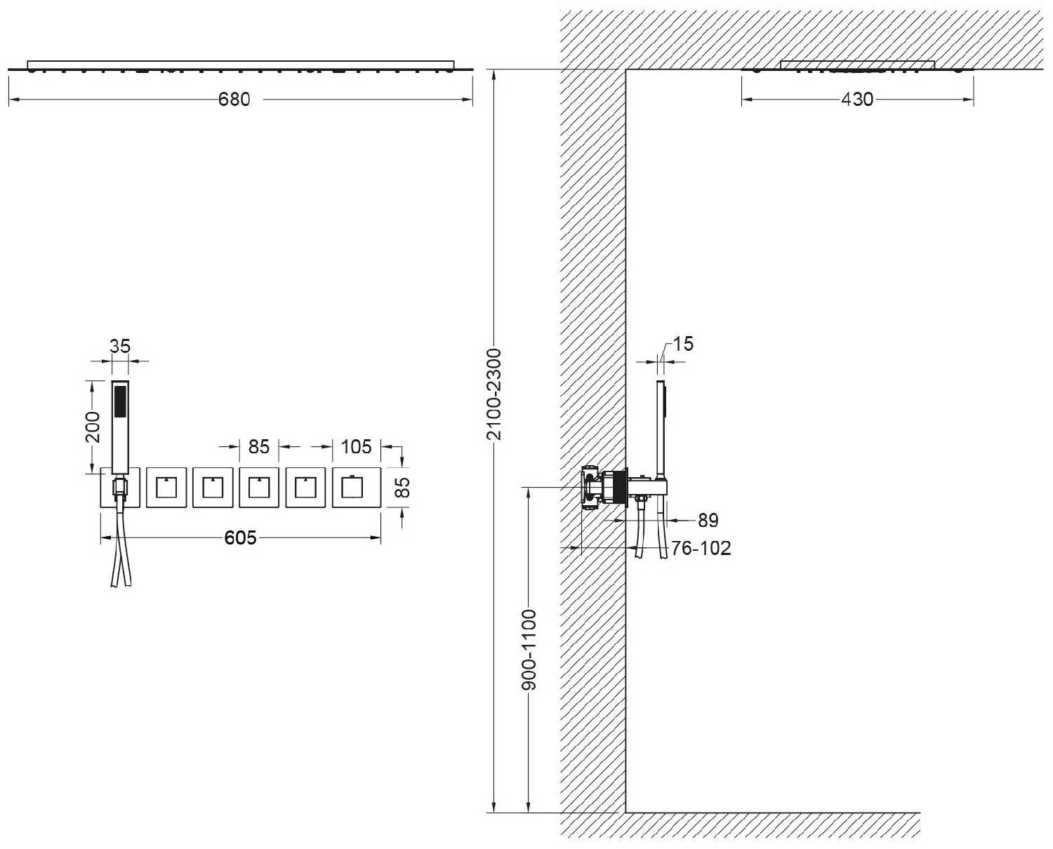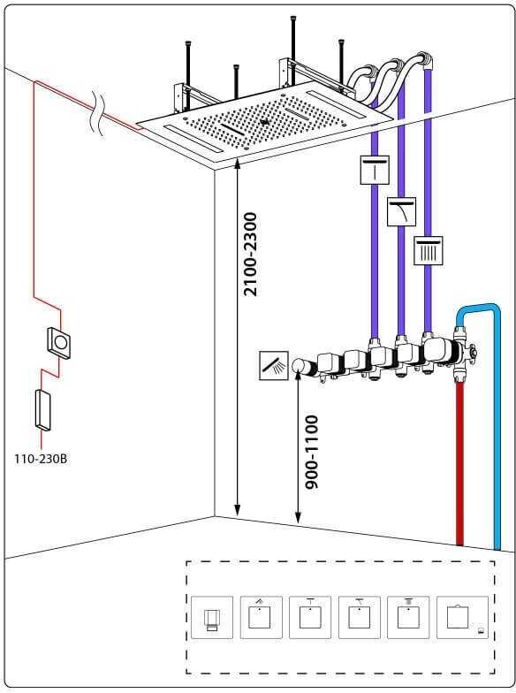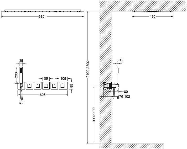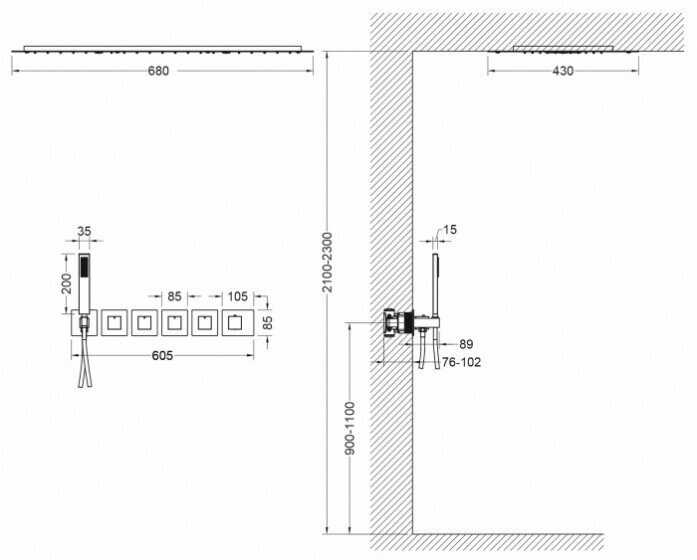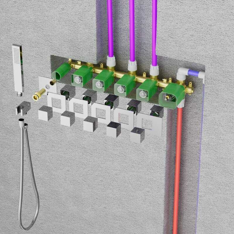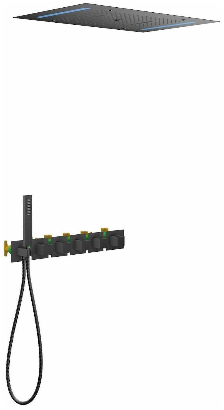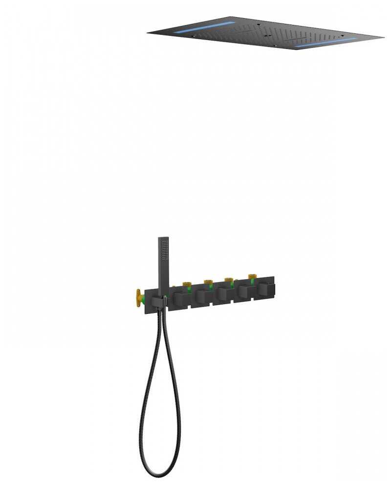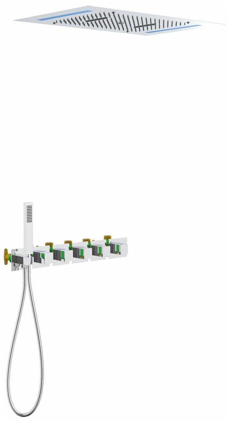Комплектация : | верхний душ, держатель лейки, лейка, переключатель потоков, ручной душ, смеситель, шланг |