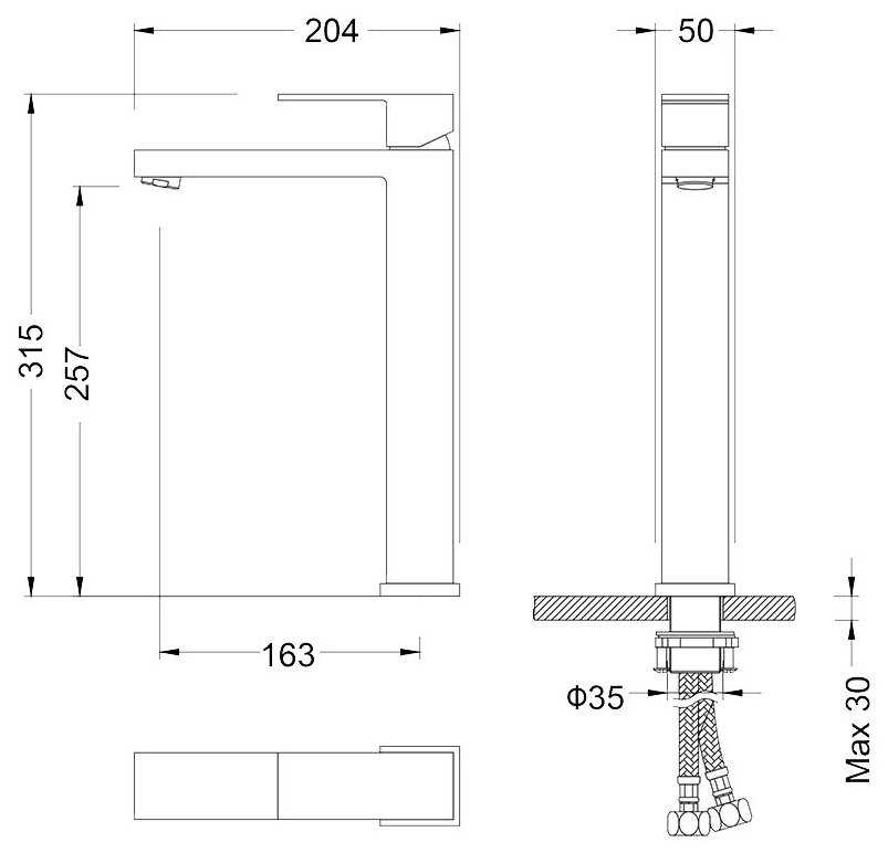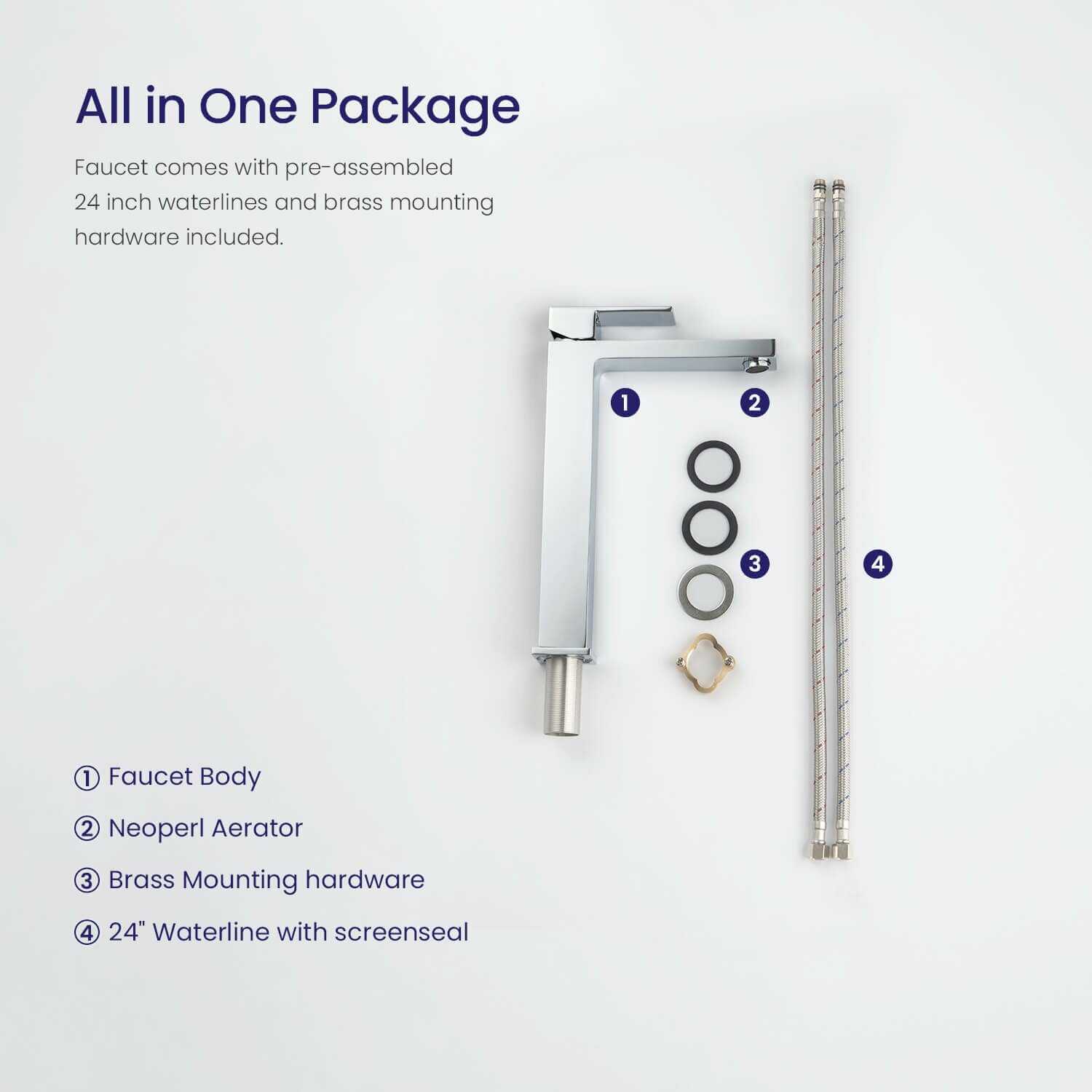 Смеситель-1шт.Гибкая подводка-2шт.Набор креплений-1шт.Инструкция-1шт