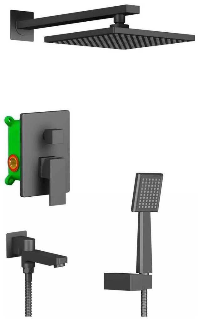| @Комплектация : | смеситель скрытого монтажа с монтажной коробкой - 1 шт., штанга тропического душа - 1 шт., тропический душ (пластик) - 1 шт., ручная лейка (пластик) - 1 шт., держатель ручной лейки (пластик) - 1 шт., декоративная накладка смесителя - 1 шт., ручка дивертора - 1 шт., ручка управления смесителем - 1 шт., шланг душа 1.5 м - 1 шт., излив - дивертор, поворотный (латунный) - 1 шт., инструкция - 1 шт. |