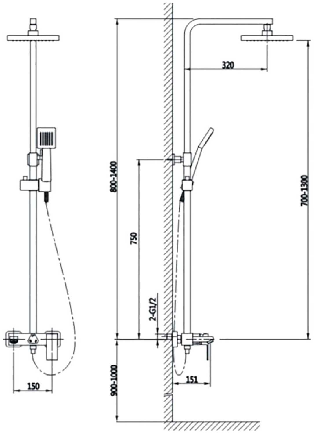 | Комплектация : | верхний душ, держатель лейки, душевая штанга, излив для набора воды, кронштейн для верхнего душа, лейка, ручной душ, смеситель, шланг |