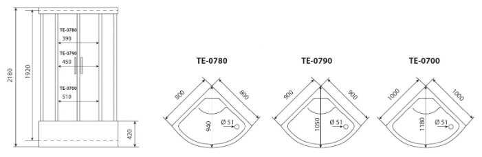 - + Очень остались довольны своим приобретением - душевая кабинка Timo TE-0790, которую приобрели уже больше года назад. закрытая кабинка 90*90 , стенки непрозрачные, двери раздвижные. Душевая нужна была именно таких габаритов, так что цена нас вполне устроила. Двери удобно и плотно закрываются, места кабинка занимает мало, даже стиралка в ванной комнате поместилась. Это идеальный выбор для маленьких ванн.