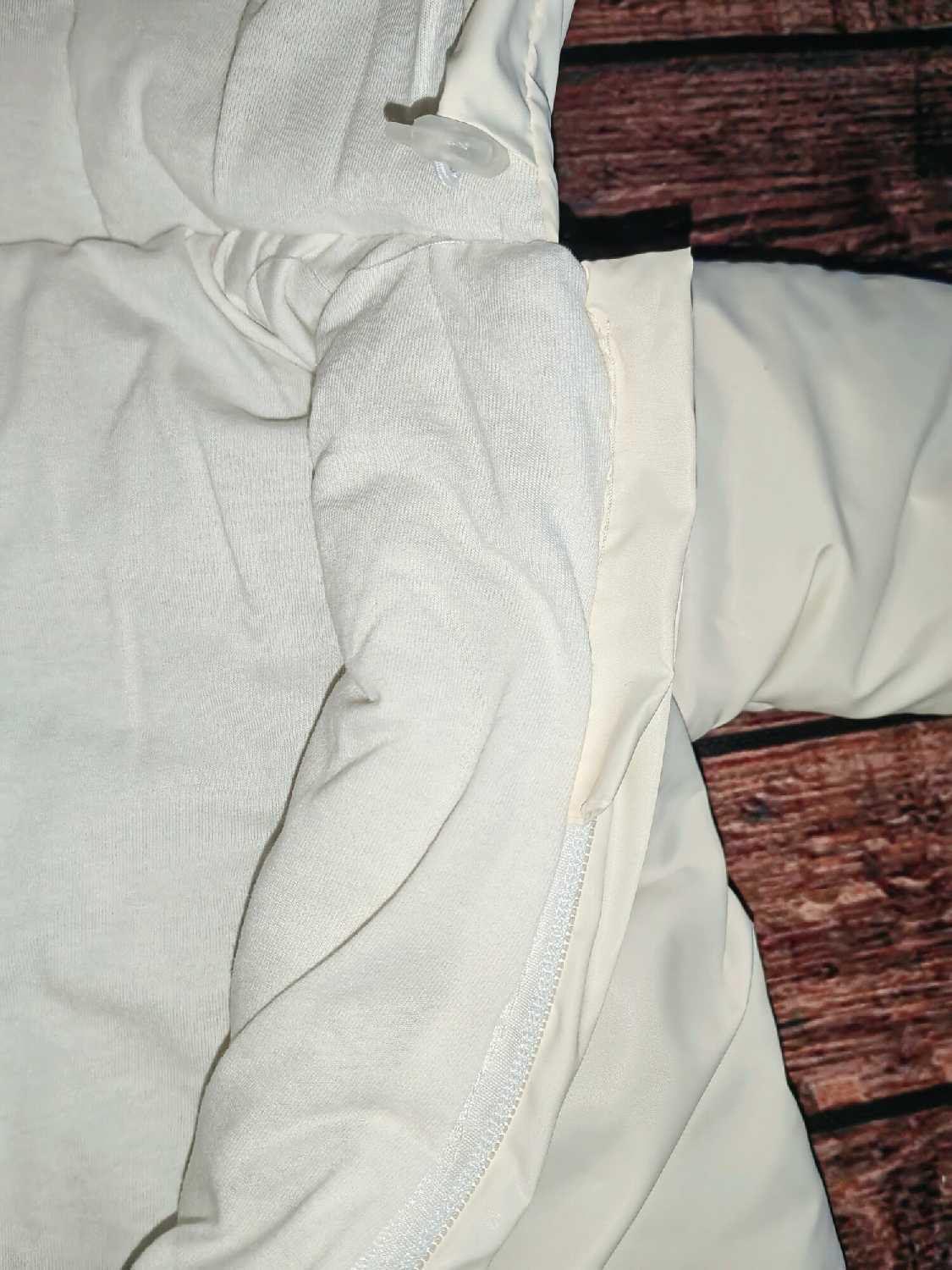 - - Мех синтетика, внизу конверта меха меньше. Ножки дополнительно нужно утеплять. Молния вшита не ровно. Шапочка и то что на шейку (забыла название) синтетика. Даже надевать не будем. Своих денег абсолютно не стоит.