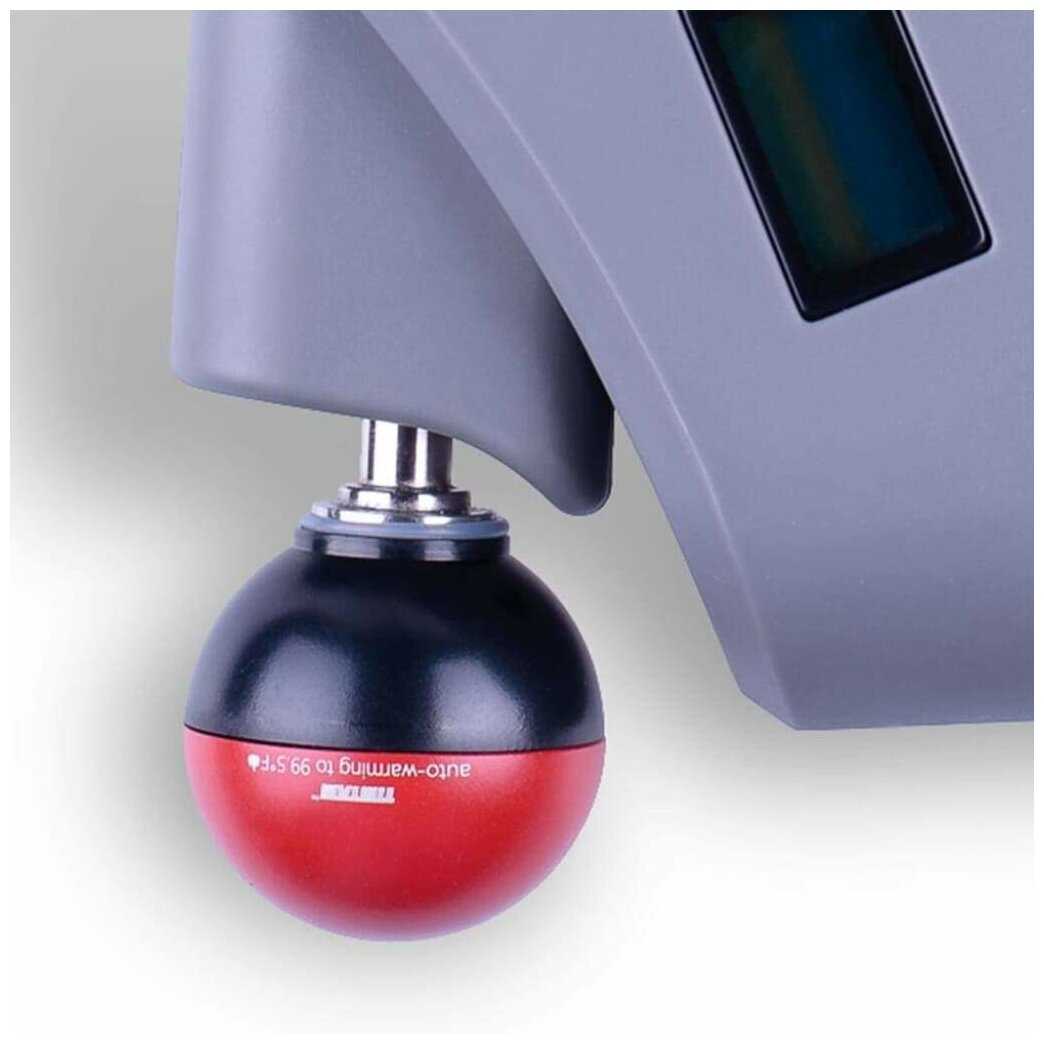 Комплектация вполне себе, 3 шарообразные насадки ( 2 малого диаметра:одна из них поддерживает функцию нагрева насадки до 37*/ и одна побольше- с возможностью замера температуры поверхности тела в процессе работы.