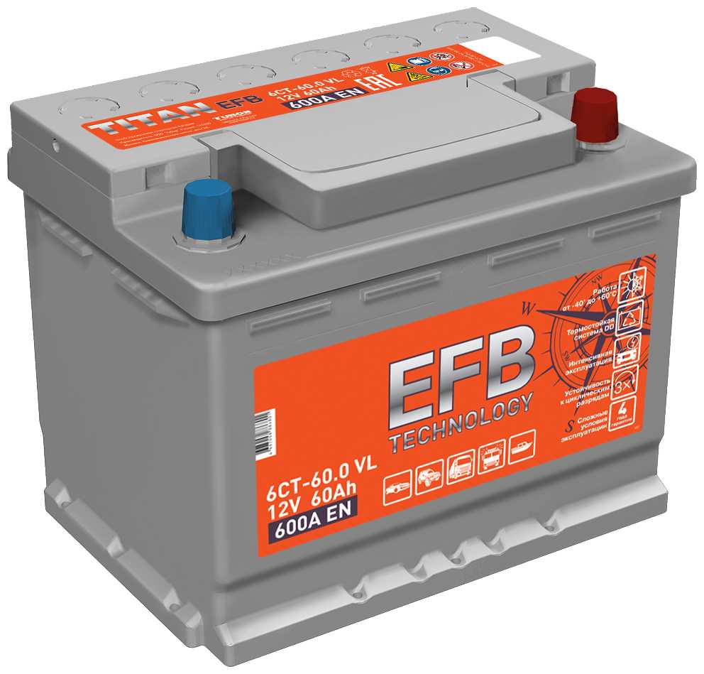 Лучшие цены сегодня на TITAN EFB 6СТ-60.0 VL 242х175х190
