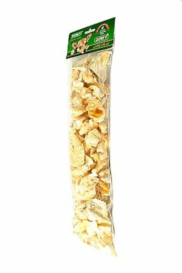- + Приемлемая цена, расфасовка на выбор,разные кусочки от маленьких до больших, от очень жёстких до совсем мягких.
