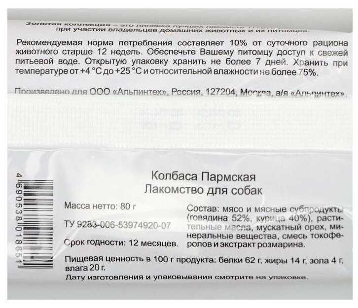 Обзор Titbit Колбаса Пармская (Золотая коллекция)*: