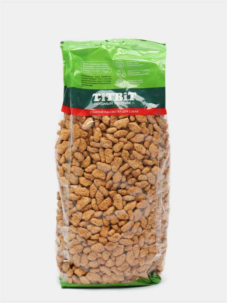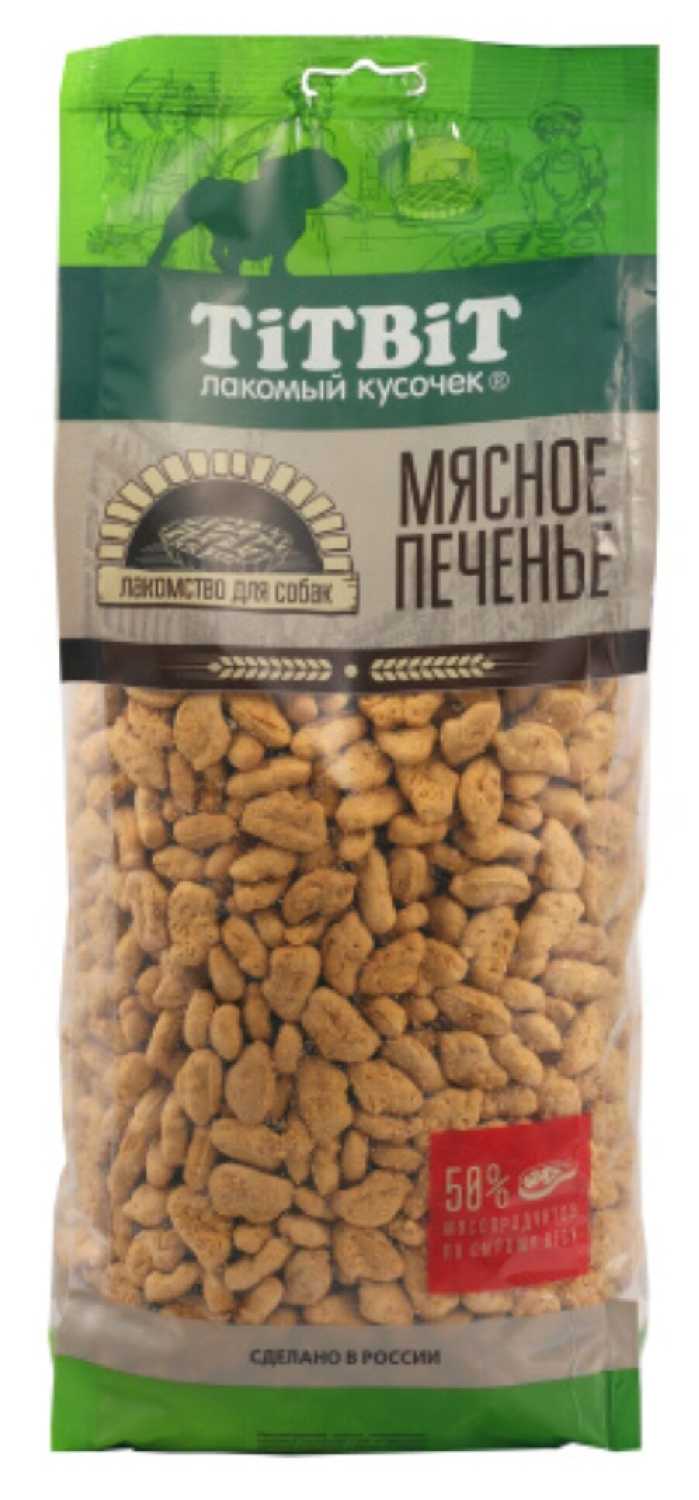Консистенция продукта: Печенье сохраняет стабильно сухую, хрустящую текстуру без жирного налёта, что предотвращает слипание в упаковке и упрощает хранение. Пользователи фиксируют изменение цвета партий (светлые/серые оттенки), но это не влияет на вкусовое восприятие собак.