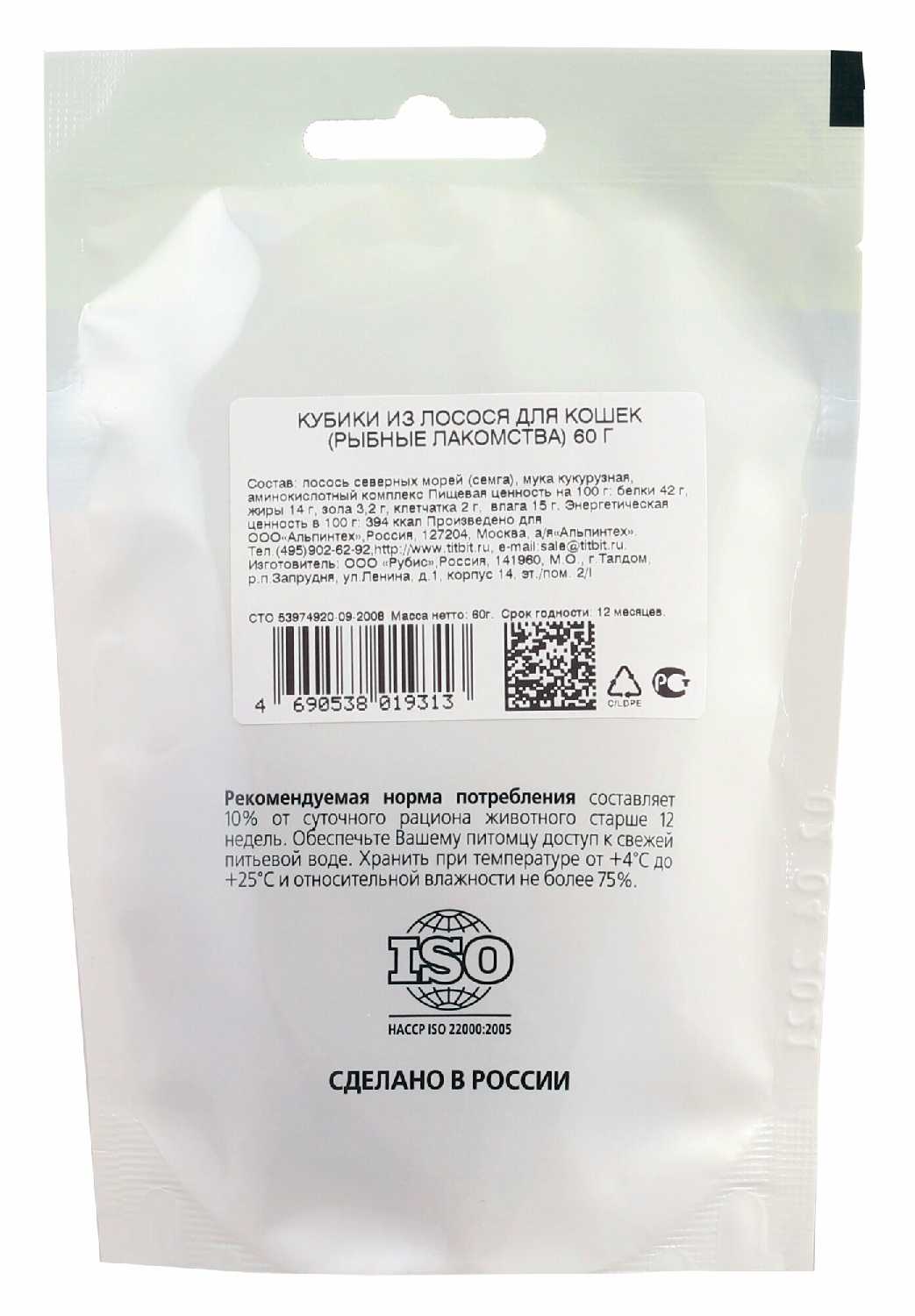 Состав : | лосось северных морей (семга), мука кукурузная, аминокислотный комплекс |