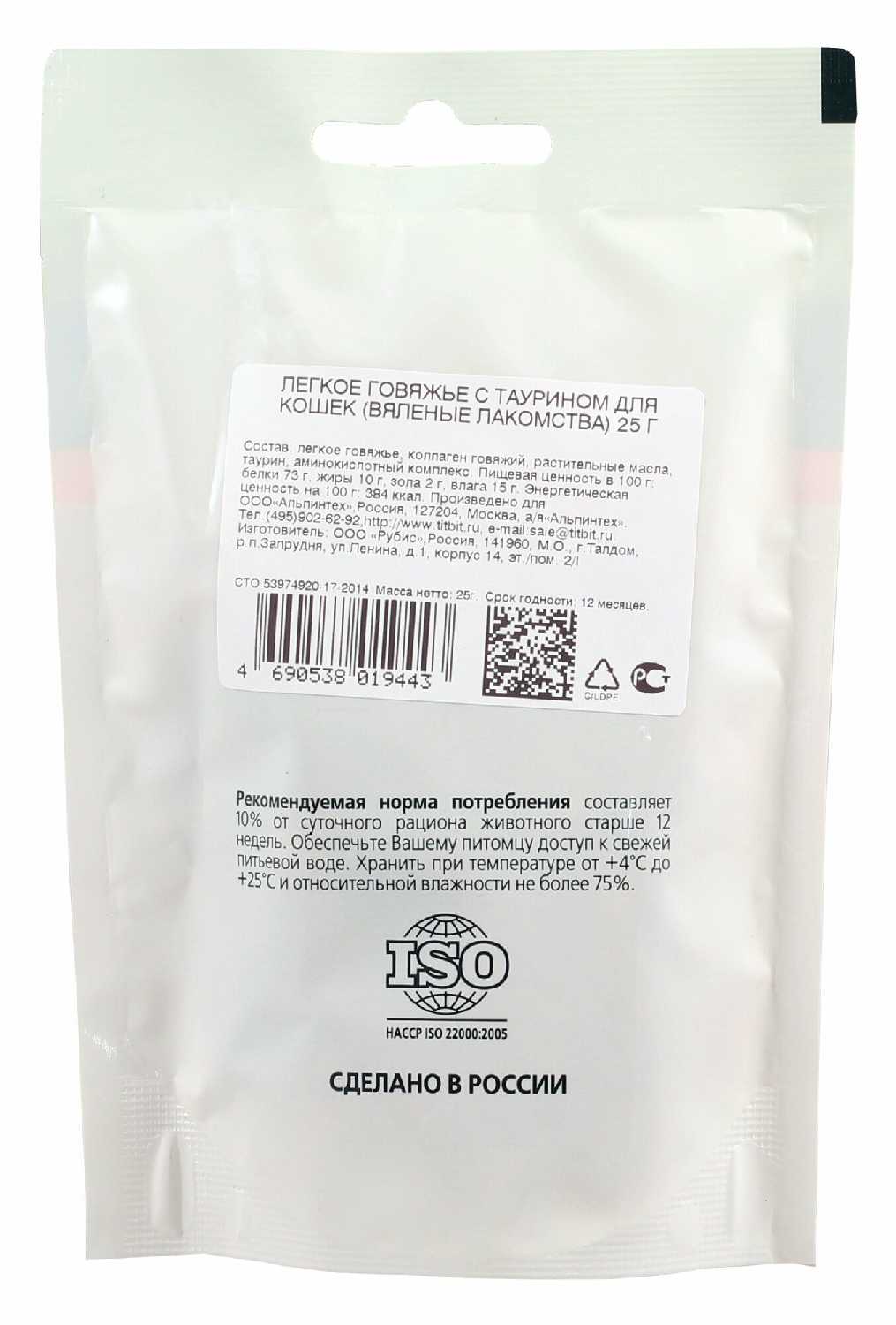 20 отзывов пользователей o Titbit Легкое говяжье для кошек вяленое с таурином