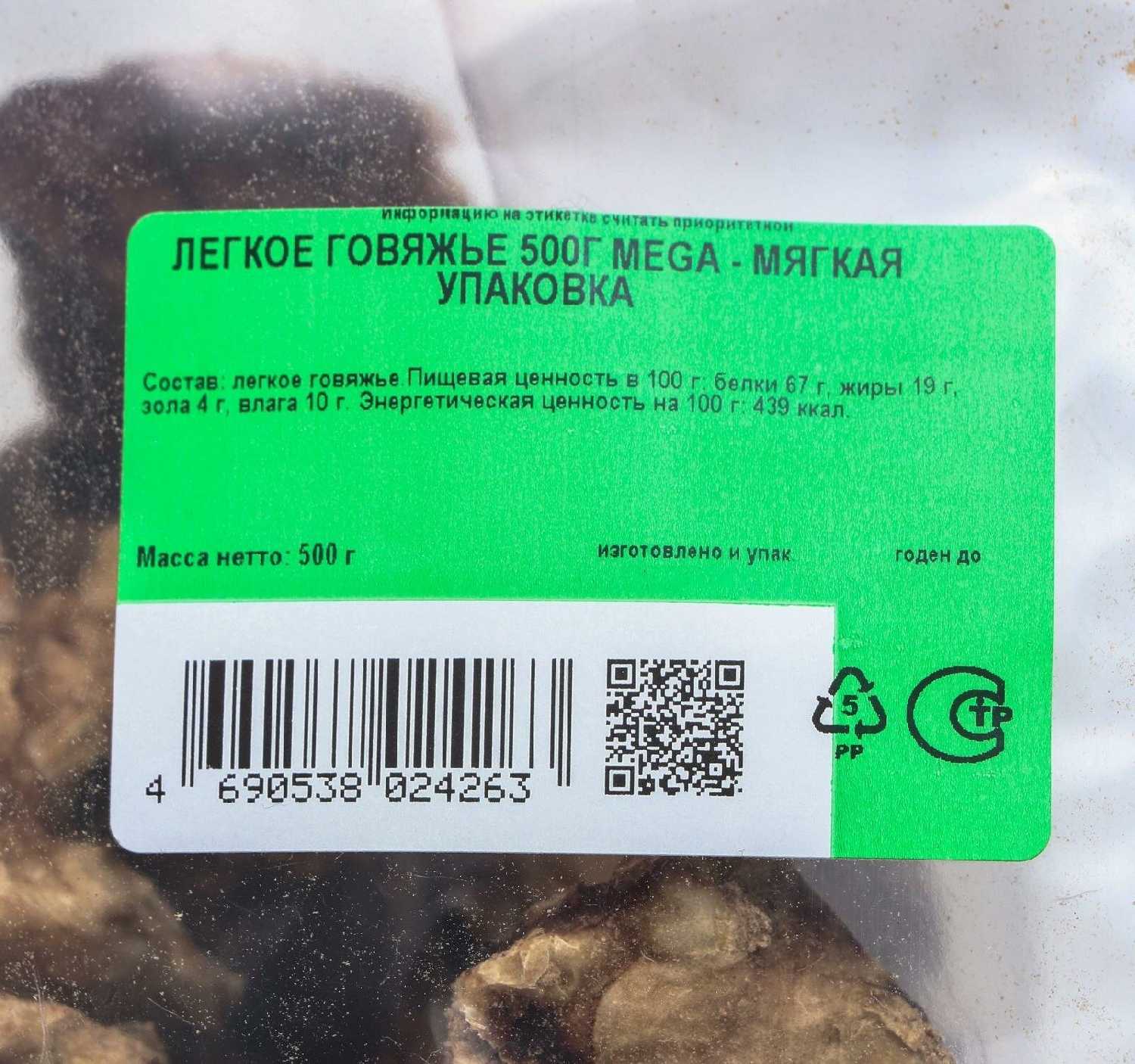 Состав : | легкое говяжье |