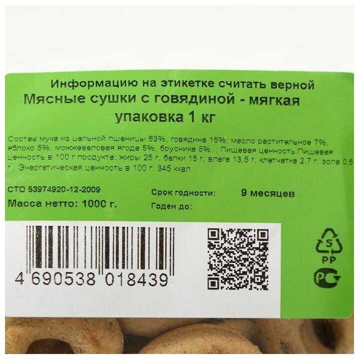 - + сушки отличные. наш пёс их очень любит. уже брала неоднократно. но в этот раз их потеряла доставка. продавец не виноват. яндекс возместил промокодом. продавца прошу упаковывать в пузырьковую пленку- курьеры кидают пачку, упаковка лопается, и полная печаль, когда получаешь. а сами сушки, повторю - замечательные.